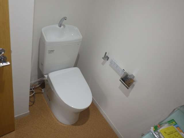 新しいトイレには、タンクの上に手洗い器が一体となったものを設置しました。独立した手洗い場を設けるスペースがない場合でも、省スペースですぐ手を洗えるため、衛生的で非常に便利です。